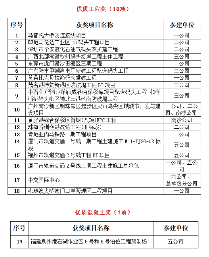 四航局獲19項中國交建質(zhì)量獎