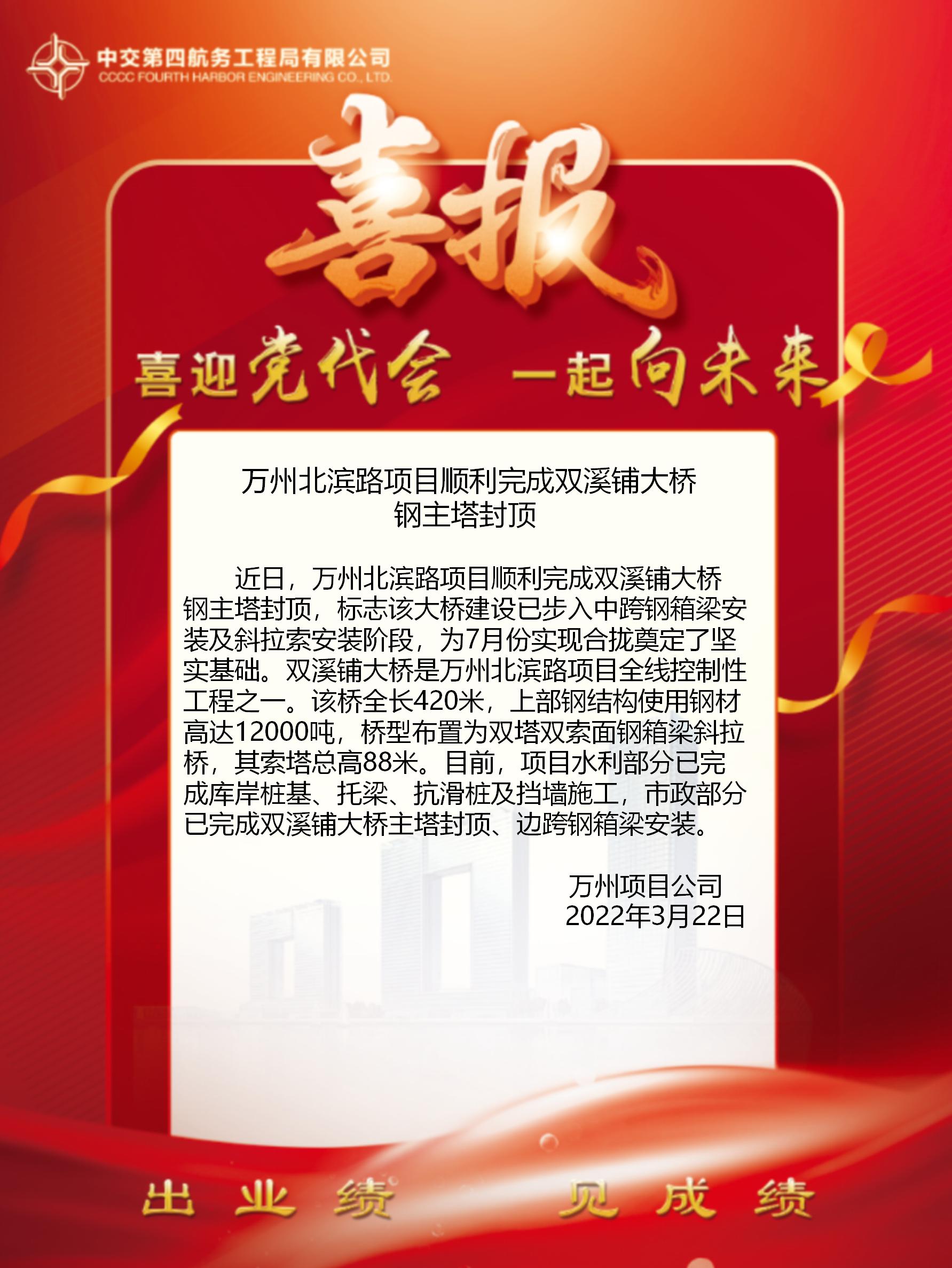 萬(wàn)州北濱路項(xiàng)目順利完成雙溪鋪大橋鋼主塔封頂