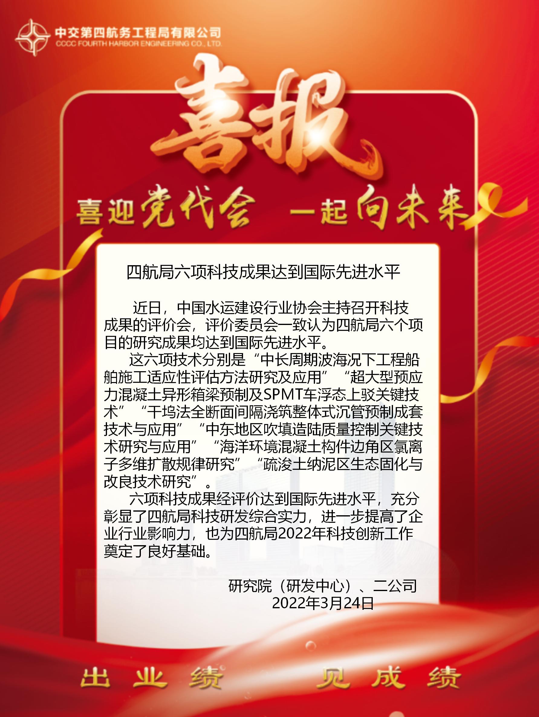 四航局六項(xiàng)科技成果達(dá)到國(guó)際先進(jìn)水平