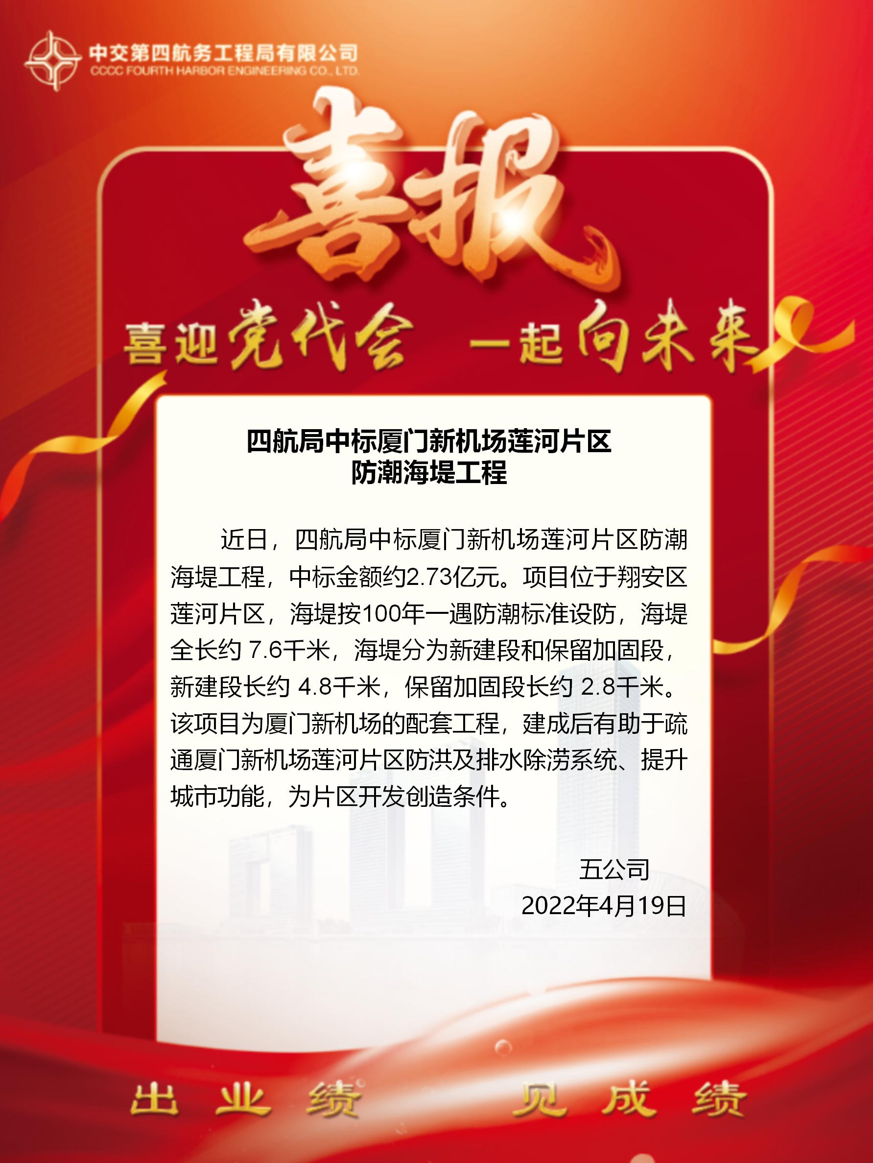 四航局中標(biāo)廈門(mén)新機(jī)場(chǎng)蓮河片區(qū)防潮海堤工程