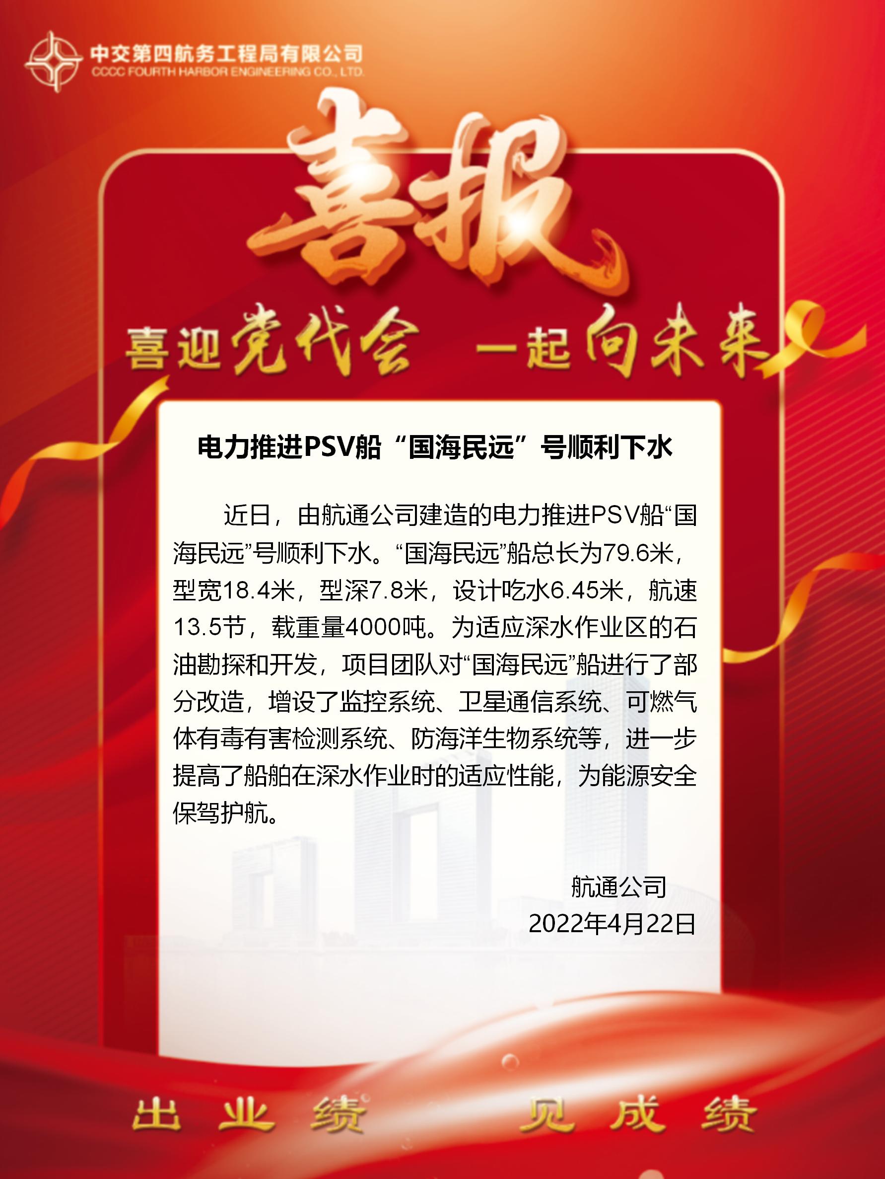 電力推進PSV船“國海民遠”號順利下水