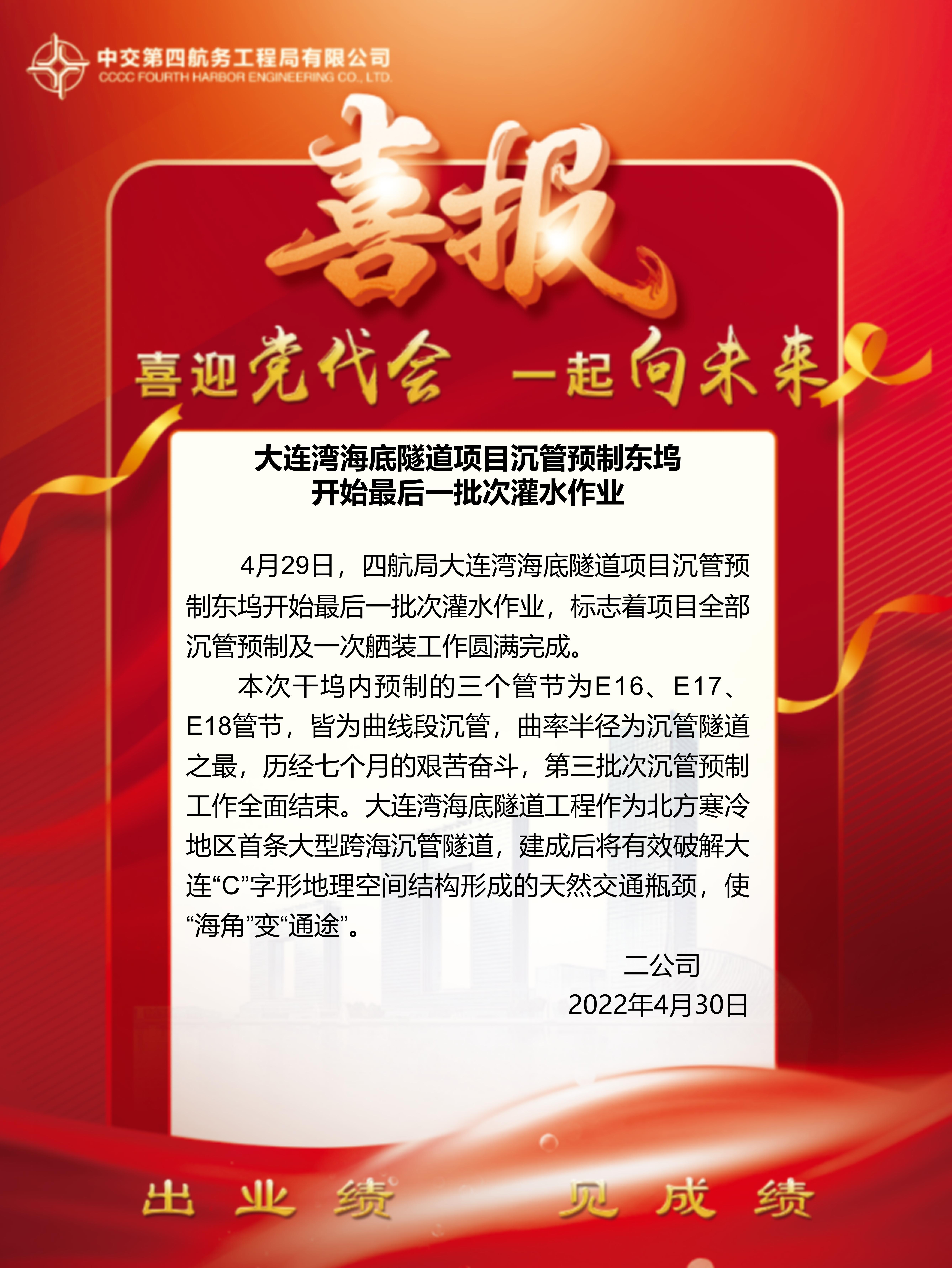大連灣海底隧道項目沉管預制東塢開始最后一批次灌水作業(yè)