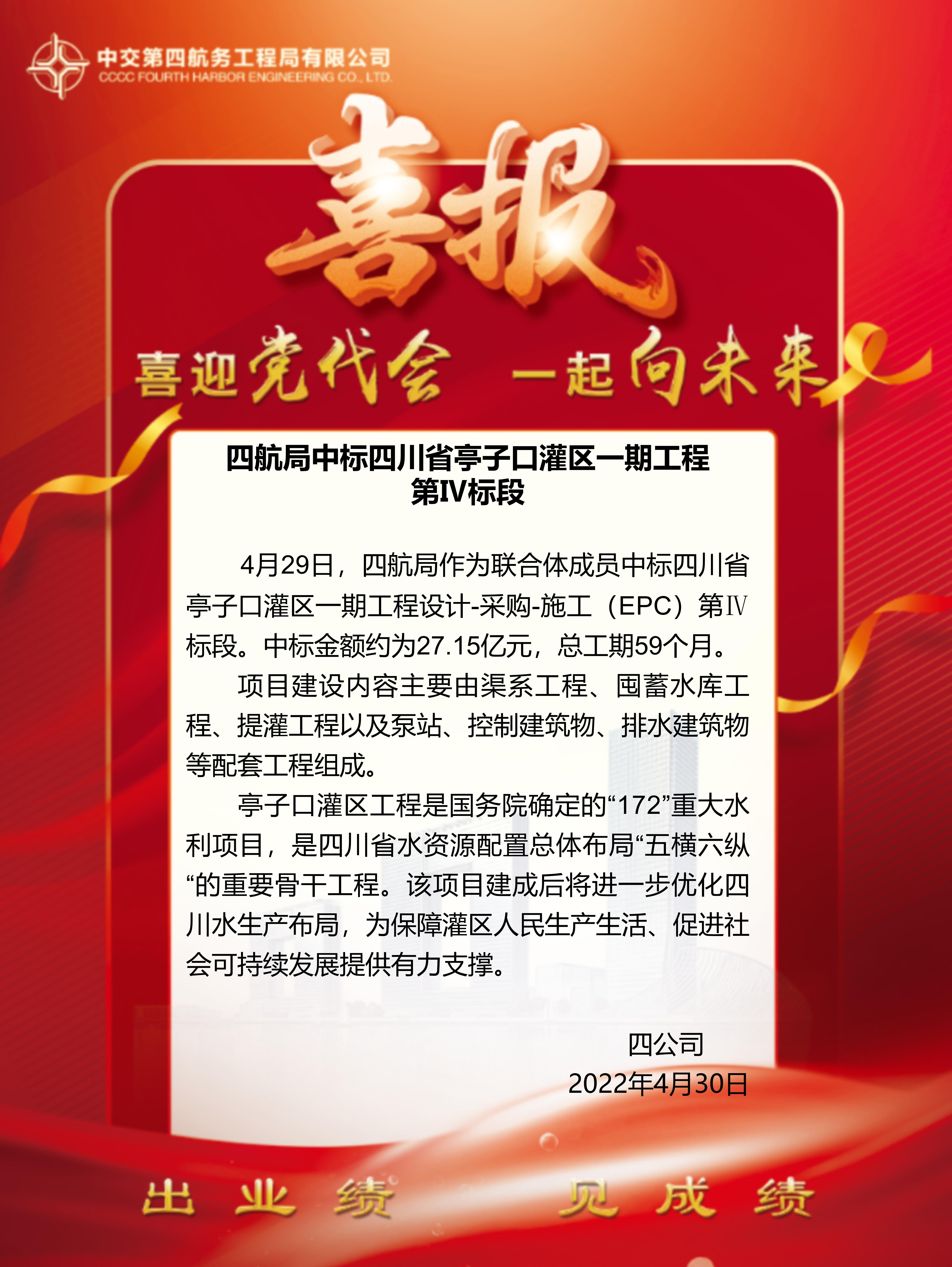 四航局中標四川省亭子口灌區(qū)一期工程第Ⅳ標段