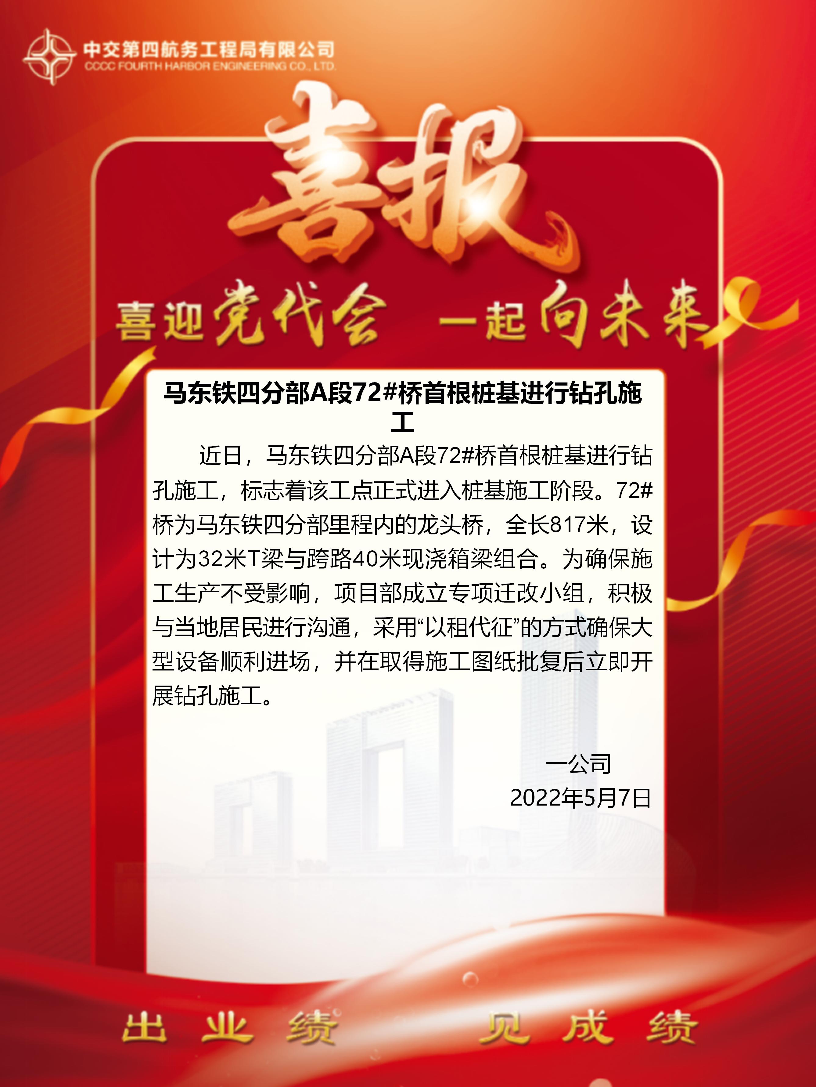 馬東鐵四分部A段72#橋首根樁基進行鉆孔施