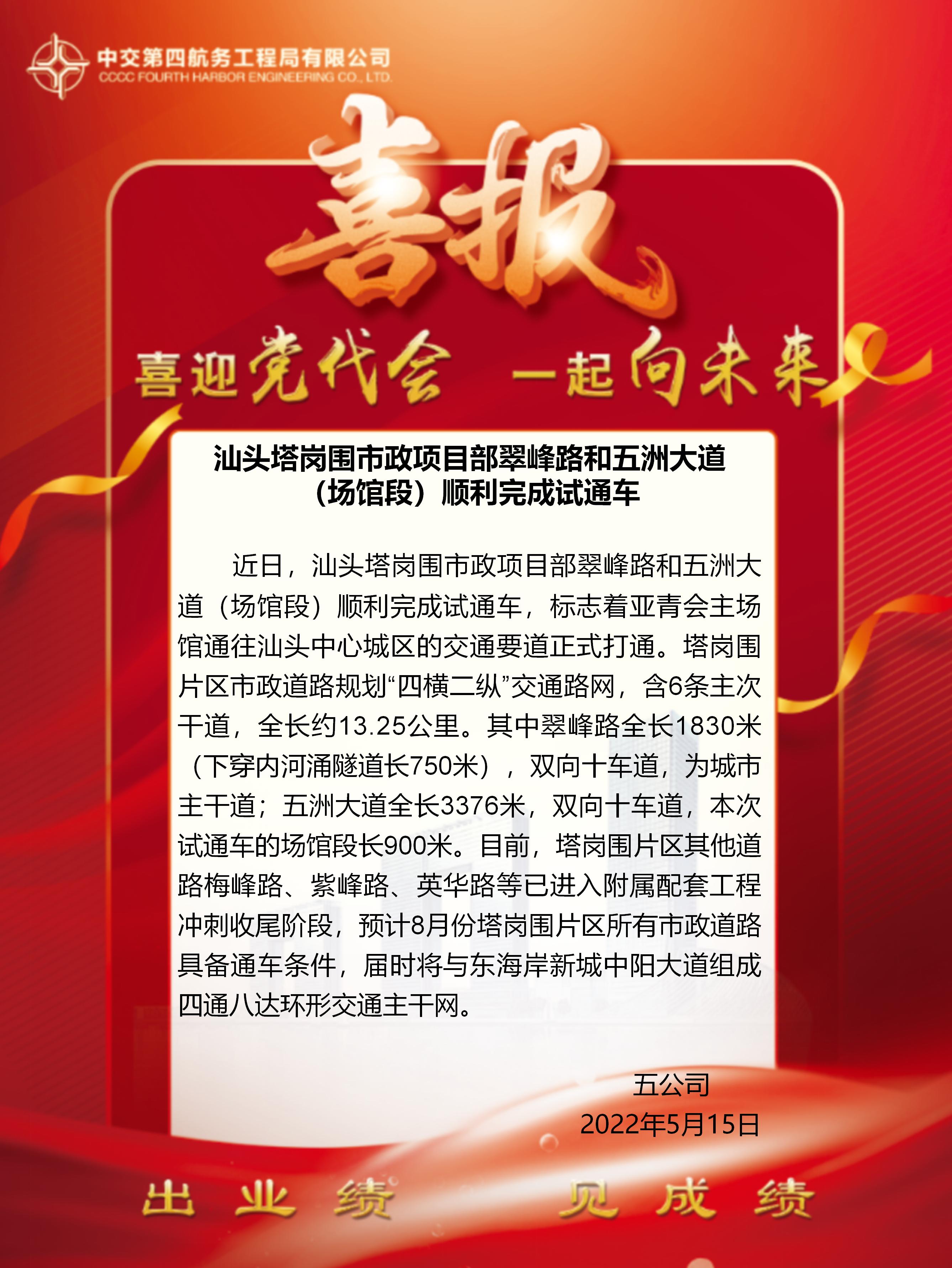 汕頭塔崗圍市政項(xiàng)目部翠峰路和五洲大道(場(chǎng)館段)順利完成試通車(chē)