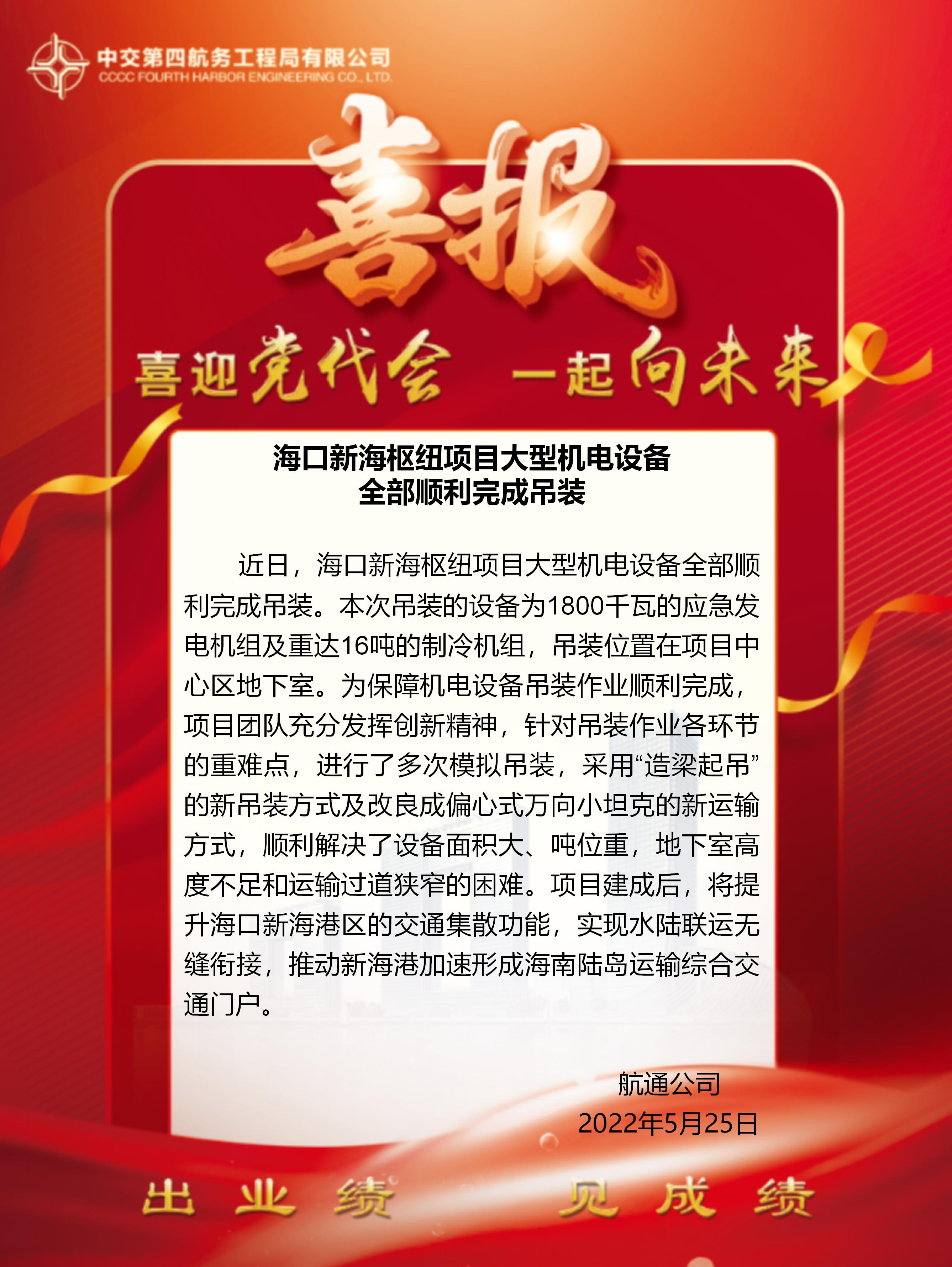 海口新海樞紐項目大型機電設備全部順利完成吊裝
