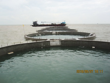 5月27日,廣西欽州港大欖坪12、13號泊位工程32個(gè)圓筒全部順利安裝,單個(gè)圓筒直徑19米,高18.6米,重1900噸。
