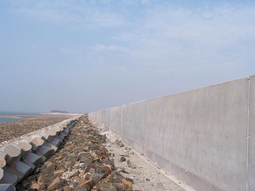 湛江鋼鐵基地項(xiàng)目部在施工中嚴(yán)格貫徹落實(shí)既定施工方案,尤其在模板投入方面始終堅(jiān)持"質(zhì)量為重、經(jīng)濟(jì)為輔"的管理理念,整個(gè)北護(hù)岸擋墻工程投入大型鋼模板2套,在施工中先后開展典型施工、專題討論、技術(shù)改進(jìn)等活動,混凝土外觀質(zhì)量得到業(yè)主、質(zhì)監(jiān)站、監(jiān)理一致好評。