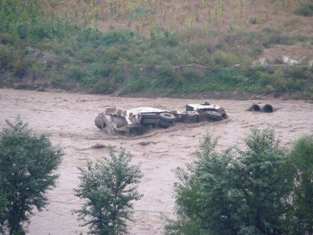 9月19日凌晨,山西呂梁山以西突降暴雨,山洪暴發(fā),導(dǎo)致四航局太中銀項(xiàng)目部施工現(xiàn)場(chǎng)的基礎(chǔ)設(shè)施受到重大影響,部分機(jī)械被洪水沖走,抗洪形勢(shì)十分嚴(yán)峻。四航局總經(jīng)理孫國(guó)強(qiáng),副經(jīng)理周達(dá)培,一公司總經(jīng)理江和明等領(lǐng)導(dǎo)聞?dòng)嵑筅s赴一線,沿途步行深入考察了施工現(xiàn)場(chǎng),詳細(xì)了解了基礎(chǔ)設(shè)施受損情況,并召集項(xiàng)目部有關(guān)人員召開臨時(shí)會(huì)議,共同研究搶修方案。