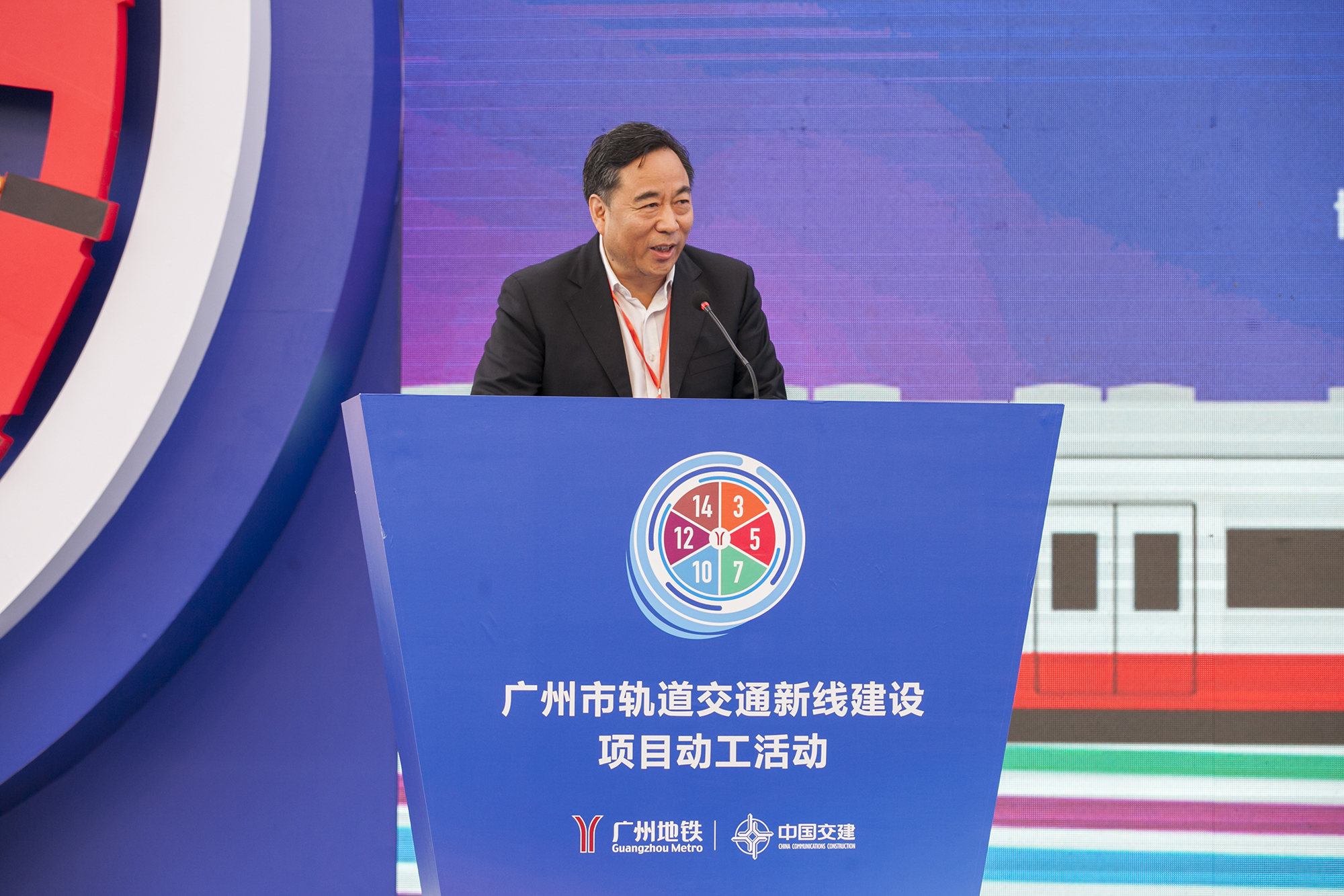 動工儀式上,宋海良代表全體參建單位致辭,感謝廣州市委市政府、廣州地鐵集團給予的信任,對廣州市新地鐵線路的全面開工表示祝賀,并鄭重承諾將不負重托,精耕細作,優(yōu)質(zhì)高效施工、安全環(huán)保作業(yè),向廣州市政府和人民交上一份滿意的答卷。他表示地鐵作為城市綜合功能的重要載體,對于廣州擴大交通容量、提升城市能級、實現(xiàn)高質(zhì)量發(fā)展具有十分重要的意義。廣州是國家重要中心城市,國際交通樞紐,隨著這六條城市動脈的動工,廣州的發(fā)展必將注入更加強勁的活力和動力。中國交建將認真貫徹習近平總書記在廣東考察時的重要指示精神,在工程建設(shè)過程中精心策劃,科學組織,堅持“專業(yè)化、標準化、數(shù)字化、精細化”的中交四化管理理念,全過程抓好項目管控,推動軌道交通向智能化的方向發(fā)展;同時注重保護沿線建筑和周邊環(huán)境,守住羊城的綠水青山,傳承嶺南的文化基因,全力將該項目建設(shè)成為精品工程、綠色工程、平安工程、廉潔工程。中國交建希望以此為契機,充分發(fā)揮自身優(yōu)勢,更加廣泛、更加深入、更加系統(tǒng)地與廣州市開展全方位、多領(lǐng)域、深層次的合作,爭當“政府與經(jīng)濟社會發(fā)展急所的責任分擔者、區(qū)域經(jīng)濟發(fā)展的深度參與者和政府購買公共服務(wù)的優(yōu)質(zhì)提供者”,實現(xiàn)由承包商向主人翁的轉(zhuǎn)變,為廣州市的發(fā)展貢獻力量。