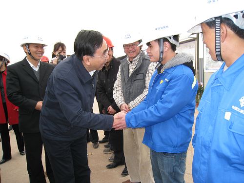 2月1日,廣東省委常委、常務(wù)副省長(zhǎng)朱小丹在佛山市領(lǐng)導(dǎo)和四航局總經(jīng)理孫國強(qiáng)等陪同下,到四航局貴廣工地視察慰問。
