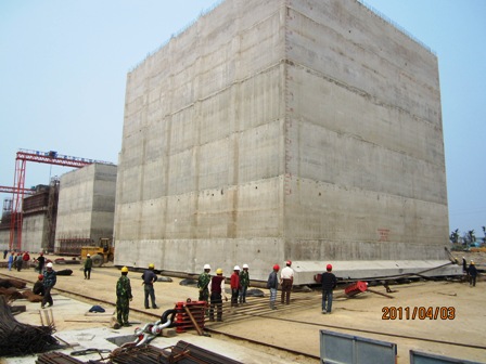 招銀港區(qū)10號泊位工程首件沉箱順利橫移