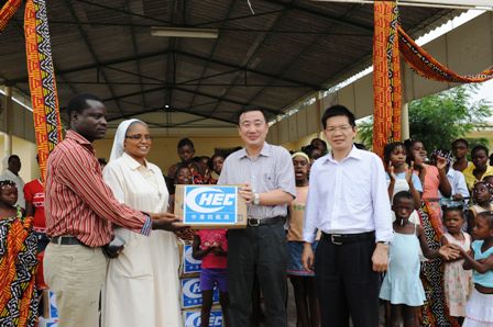 在安哥拉,梁董事長一行與中港辦事處相關(guān)領(lǐng)導(dǎo)親切座談,深入項目現(xiàn)場仔細(xì)察看施工情況,聽取了各在建項目部的詳細(xì)匯報,并對各項目部在受到當(dāng)?shù)刭Y源匱乏、資金不到位、人員變動頻繁等不利因素影響的情況下仍然取得的不俗業(yè)績給予充分肯定。期間,梁董事長一行還慰問了洛比托市最大的孤兒院,不遠(yuǎn)萬里地給他們送去超越國界的祝福和關(guān)愛。