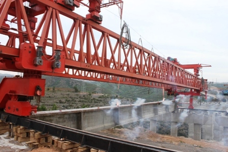 溫河大橋主橋是該項目的重點控制性工程。為確保溫河大橋按期交工,項目部統(tǒng)籌安排,利用冬季施工增建一座T梁預(yù)制場,有效加快了制梁速度,并進場兩臺架橋機從大橋兩端同時架梁,小里程方向架橋機已調(diào)試完成,架梁工作計劃隨后展開。