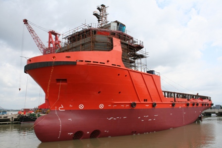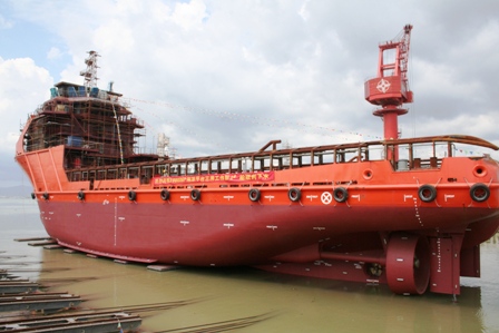 航通公司承建的大功率海洋平臺(tái)工作船順利下水