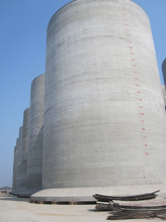 廣西欽州港30萬噸級石油碼頭工程位于欽州灣三墩島南側(cè),碼頭總長541.65米,兩側(cè)可停泊30萬噸原油船,設(shè)計年通過原油能力為2000萬噸。該碼頭工程由18個特大圓筒組成,單個圓筒外徑為20米,高29.5米,重達(dá)3600噸,圓筒預(yù)制是該項目施工的重點和難點之一。自開工以來,項目領(lǐng)導(dǎo)就高度重視圓筒預(yù)制施工管理工作,經(jīng)常組織工程技術(shù)管理人員,群策群力地探討各類施工問題,并及時解決施工中存在的問題。同時,針對汛期雨量大等特點,提前做好準(zhǔn)備工作和相應(yīng)措施方案,做好各類預(yù)防過程工作,有效確保了項目建設(shè)順利推進(jìn)。