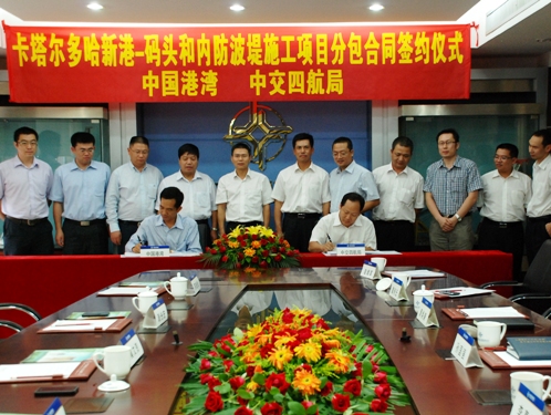 6月28日,四航局與中港公司正式簽訂多哈新港碼頭及內防波堤項目施工合同,四航局孫國強總經理、黃煥謙副總經理、李惠明副總經理、國際市場部和二公司領導,中港公司副總經理莫文賀等參加了簽字儀式。