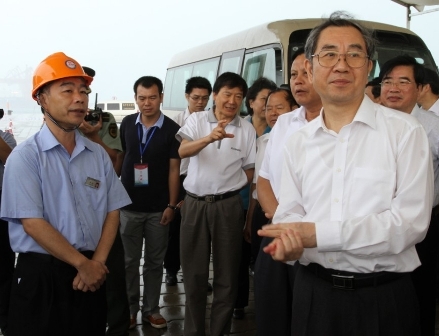 7月12日,廣西壯族自治區(qū)主席馬飚在防城港市委書記禤沛鈞、市長莫恭明、防城港務集團總經(jīng)理謝毅等領導的陪同下,到三公司承建的防城港403-407號泊位碼頭項目視察指導工作。