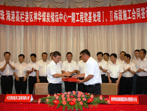 7月23日,四航局與神華粵電珠海港煤炭碼頭有限責任公司簽訂了珠海港高欄港區(qū)神華煤炭儲運中心一期工程軟基處理Ⅰ標施工合同。四航局董事長、黨委書記梁卓仁出席簽字儀式并致辭,副總經(jīng)理方丘洚代表施工單位簽訂合同。