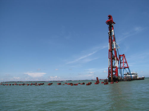 湛江港散貨碼頭工程30萬噸級碼頭沉樁完成