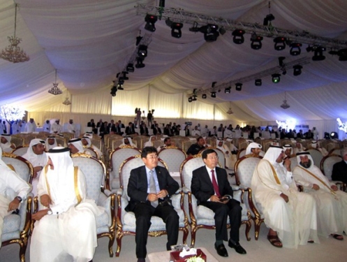 10月10日,中交股份董事長周紀昌在中港總經(jīng)理孫子宇、四航局總經(jīng)理孫國強、副總經(jīng)理李惠明等陪同下,到多哈新港項目檢查指導(dǎo)工作并參加開工奠基儀式。
