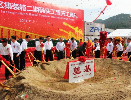 開(kāi)工典禮上,何寧卡代市長(zhǎng)、楊潤(rùn)貴董事長(zhǎng)、錢乃駿總裁分別進(jìn)行了熱情洋溢的講話。他們對(duì)珠海港近幾年來(lái)的發(fā)展和成績(jī)給予了充分的肯定,并希望珠海港人能夠再接再厲,再創(chuàng)輝煌,讓珠海港成為國(guó)內(nèi)乃至世界的一流大港。隨后,珠海市委書記甘霖宣布珠海港高欄港區(qū)二期集裝箱碼頭項(xiàng)目開(kāi)工。