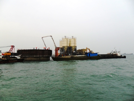 施工中,項(xiàng)目部克服了施工區(qū)域距離陸地較遠(yuǎn)、施工環(huán)境惡劣等難題,經(jīng)過(guò)21小時(shí)奮戰(zhàn)澆筑完成第一段胸墻,標(biāo)志著該碼頭主體工程施工進(jìn)入新的階段。