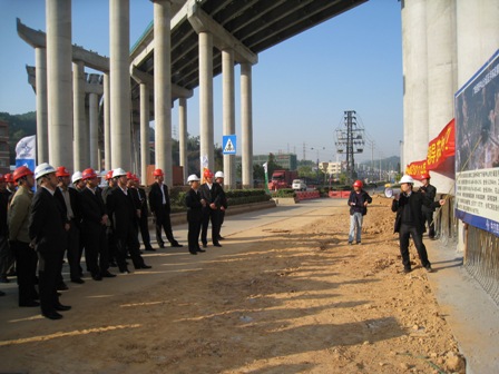 交流會期間,與會人員到一公司廣珠西線中山四標項目現(xiàn)場觀摩,參觀麻斗高架橋、深灣隧道施工現(xiàn)場,聽取項目部橋梁高墩、雙連拱隧道施工工藝介紹。一公司總工程師榮勁松在交流會上展示了一公司近年來橋梁上部結(jié)構(gòu)施工技術(shù)成果。與會人員就如何更好地開展技術(shù)交流活動進行研討,提出很多有建設(shè)性的意見和建議。