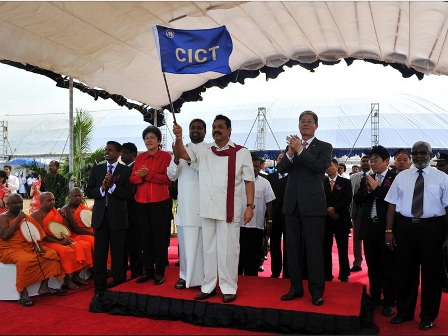 斯里蘭卡總統(tǒng)馬辛達·拉賈帕克薩出席了項目揭幕儀式及開工典禮。當招商局集團董事長傅育寧把科倫坡國際集裝箱碼頭公司旗傳遞給斯里蘭卡總統(tǒng)拉賈帕克薩之后,總統(tǒng)揮動小旗,指揮工程船開始吹填作業(yè),由此宣告該項目正式開工。 中交股份副總裁陳玉勝、斯里蘭卡港務局局長、港口及公路部副部長、中國駐斯里蘭卡大使楊秀萍分別在開工典禮上致辭。