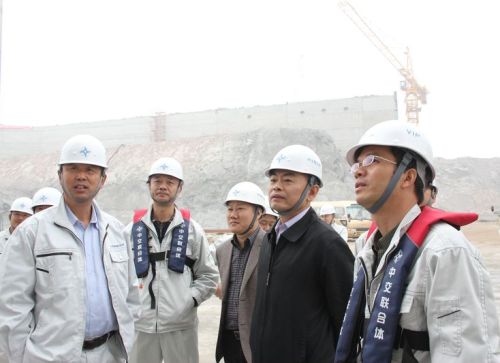 在牛頭島沉管預(yù)制廠施工現(xiàn)場,陳云副總裁聽取了關(guān)于沉管預(yù)制廠整體布局、施工工程進(jìn)度、沉管預(yù)制等關(guān)鍵工藝以及沉管預(yù)制設(shè)備、人員、管理制度等工作準(zhǔn)備情況的匯報(bào),深入施工深塢現(xiàn)場,查看了正在進(jìn)行鋼扶壁安裝的塢門大沉箱和正在緊張調(diào)試的高壓發(fā)電機(jī)房;在鋼結(jié)構(gòu)廠房,陳云副總裁一行參觀了即將開始足尺模型試驗(yàn)的2#沉管澆筑區(qū)。
