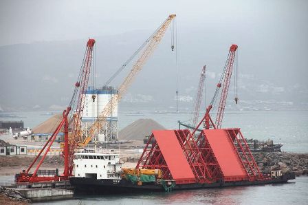 港珠澳大橋沉管預(yù)制廠淺塢鋼閘門首批部件運(yùn)達(dá)