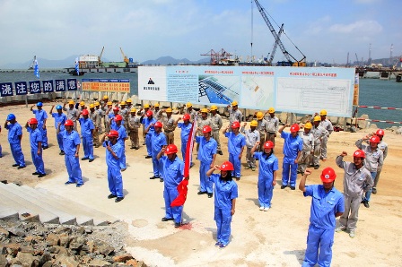5月24日,珠海神華項目部在珠海高欄港隆重舉行青年突擊隊授旗儀式。四航局黨委副書記、紀委書記、工會主席張猛,四航局團委書記江雄,二公司黨委副書記、副總經理楊凱等領導出席授旗儀式。