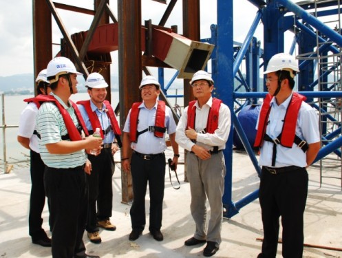 孫子宇聽(tīng)取了有關(guān)主橋施工最新進(jìn)展和技術(shù)特點(diǎn)的介紹,對(duì)項(xiàng)目部所取得的成績(jī)表示肯定。他指出,主橋工程作為技術(shù)含量高、執(zhí)行標(biāo)準(zhǔn)嚴(yán)的國(guó)際性工程,是整個(gè)檳城二橋的決定性工程,項(xiàng)目部要踏踏實(shí)實(shí)狠抓項(xiàng)目管理,樹(shù)立起為國(guó)爭(zhēng)光、為企業(yè)爭(zhēng)光的精神,優(yōu)質(zhì)高效完成工程建設(shè)。
