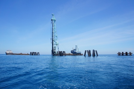 7月11日,洋浦港油品碼頭及配套儲運設施工程水工工程30萬泊位碼頭鋼管樁沉樁施工全部完成。