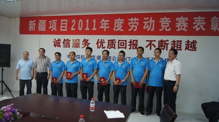 又訊 7月20日,新疆項(xiàng)目部召開(kāi)2011年度勞動(dòng)競(jìng)賽表彰大會(huì)。廣東省總工會(huì)黨組成員、紀(jì)檢組長(zhǎng)廖汝捷,廣東省海員工會(huì)主席康盛忠、副主席周士超,廣州海員俱樂(lè)部主任鄒偉光,四航局黨委副書(shū)記張猛,四航局高級(jí)顧問(wèn)肖干生,四航局一公司黨委書(shū)記陳國(guó)良等領(lǐng)導(dǎo)出席會(huì)議,并分別為先進(jìn)集體、先進(jìn)個(gè)人頒發(fā)榮譽(yù)證書(shū)。