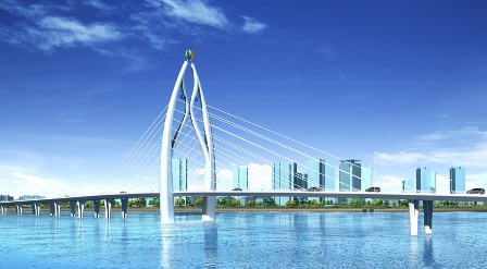 該工程位于漳州招商局開發(fā)區(qū)南炮臺附近,是完善雙魚島及漳州開發(fā)區(qū)路網(wǎng)規(guī)劃,滿足雙魚島與附近陸域連接的重要配套設(shè)施。雙魚島為國內(nèi)首座大型離岸式生態(tài)人工島,陸島連接橋建成后,不僅為雙魚島提供更加快速、便捷的過海通道,并且將進一步改善漳州開發(fā)區(qū)及廈門港區(qū)的交通網(wǎng)絡(luò)。該橋梁為海上斜拉橋工程,包括陸島連接橋的主橋、引橋及主橋、引橋上的給水、電力管線工程及陸島連接橋的景觀、路燈工程,路線全長1010.8米。