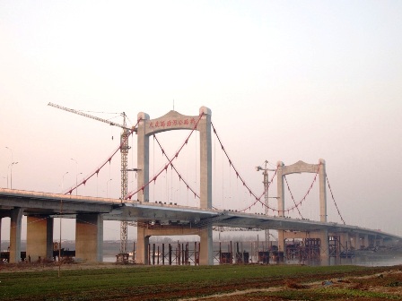 該大橋全長(zhǎng)1778米,四航局承建該橋主橋和北岸引橋部分,其中主橋系采用主跨為200米的雙塔雙索面三跨連續(xù)半漂浮體系自錨式懸索橋。該橋的正式通車對(duì)于緩解蚌埠市淮河南北兩岸的交通壓力、促進(jìn)兩岸經(jīng)濟(jì)社會(huì)的平衡發(fā)展有著極大的促進(jìn)作用,具有重大的經(jīng)濟(jì)價(jià)值和社會(huì)價(jià)值。