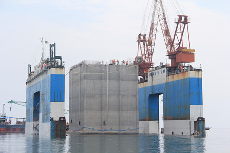 三公司喀麥隆克里比深水港工程首件沉箱安裝告捷