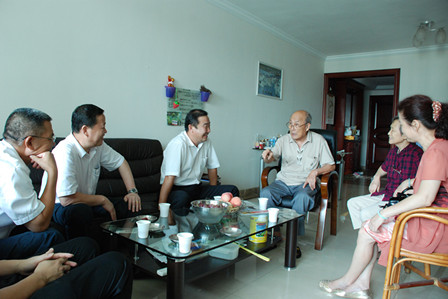 8月1日,在中國人民解放軍建軍86周年之際,四航局董事長、黨委書記梁卓仁,黨委副書記、紀委書記、工會主席張猛帶領有關負責人到離休老干部陳悅文、王玉芝家中進行慰問,向老領導獻上節(jié)日的問候,感謝他們?yōu)橹袊嗣竦慕夥攀聵I(yè)、為建設社會主義的新中國作出的卓越貢獻,祝福老領導身心健康!