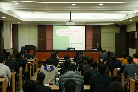 11月29日,四航局舉行學(xué)習(xí)貫徹十八屆三中全會精神專題報告會暨第五次黨委中心組學(xué)習(xí)擴(kuò)大會議,邀請廣東省社會科學(xué)院科研處處長、環(huán)境經(jīng)濟(jì)與政策研究中心主任、南開大學(xué)經(jīng)濟(jì)學(xué)博士趙細(xì)康對三中全會精神作深入解讀,深入學(xué)習(xí)貫徹黨的十八屆三中全會精神。董事長、黨委書記梁卓仁主持會議,總經(jīng)理孫國強(qiáng)等四航局在家的領(lǐng)導(dǎo)班子成員、四航局黨委委員、四航局本部部門正副職、廣州地區(qū)各單位領(lǐng)導(dǎo)班子成員及其黨群部門負(fù)責(zé)人、部分黨員代表共計(jì)100人參加會議。