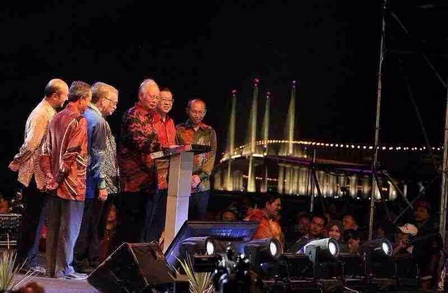 3月1日晚,為慶祝東南亞最長(zhǎng)的大橋馬來(lái)西亞檳城第二跨海大橋通車,馬來(lái)西亞政府在大橋現(xiàn)場(chǎng)隆重舉行了嘉年華會(huì)和大橋啟用開(kāi)幕式,過(guò)萬(wàn)民眾前來(lái)觀禮。馬來(lái)西亞首相納吉、前首相巴達(dá)維、檳州首長(zhǎng)林冠英等政要及中國(guó)大使黃惠康出席,中交副總裁孫子宇、中國(guó)港灣黨委書(shū)記王家印、四航局董事長(zhǎng)梁卓仁及各參建單位代表應(yīng)邀出席。