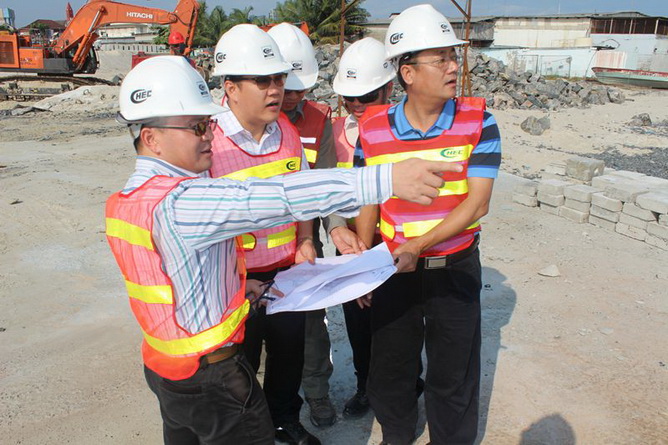 在克里比項目,李惠明一行察看了項目一期工程和進場道路施工現(xiàn)場,了解了項目進展情況,并組織召開專題總結(jié)會。李惠明指出,項目部要繼續(xù)做好誠信履約、資源調(diào)配、外部協(xié)調(diào)等工作,及時做好相關(guān)工作經(jīng)驗的積累和總結(jié),為進一步開拓市場創(chuàng)造有利條件;要認真做好一期工程收尾工作,充分利用好天氣,部署認道路整治項目施工,為深水港按期開港提供保障。在喀期間,李惠明一行還會見了中港中非喀麥隆區(qū)域分公司及總經(jīng)理部負責(zé)人,就兩個在建工程建設(shè)情況及雙方后續(xù)在喀及周邊開展合作等進行了交流。