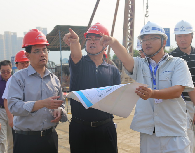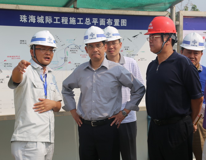 10月14日,廣東省鐵路建設投資集團董事長朱耀忠一行在廣珠城際公司總經(jīng)理余國武陪同下,到四航局珠海城際項目考察調研。