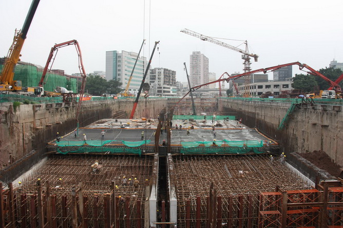 2014年2月21日開工以來,歷經(jīng)245天,項(xiàng)目部完成9000噸鋼筋綁扎、5萬方混凝土澆筑任務(wù)。施工中,項(xiàng)目部積極推動(dòng)設(shè)計(jì)單位變更工序銜接,優(yōu)化施工工藝,大大縮短了關(guān)鍵線路的施工工期。
