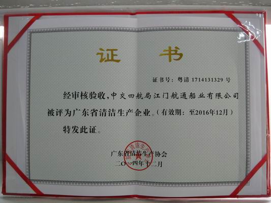 1月22日,四航局江門航通船業(yè)有限公司獲評廣東省清潔生產(chǎn)企業(yè)。