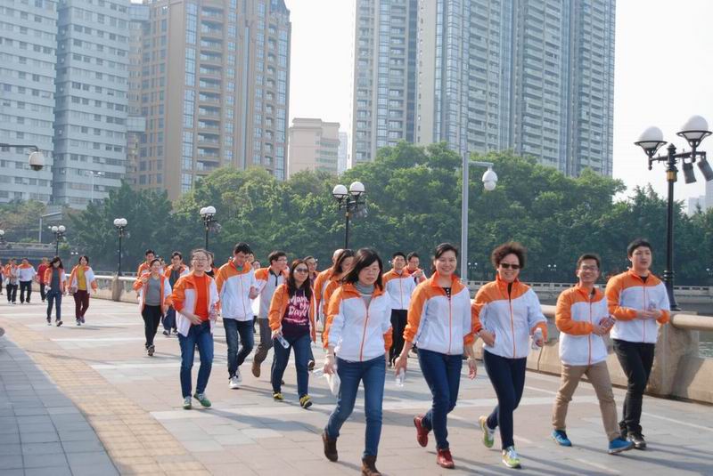 “迎新春暴走”活動(dòng)起點(diǎn)和終點(diǎn)設(shè)在四航局本部,并在中山大學(xué)北門、廣州大橋分設(shè)兩個(gè)中轉(zhuǎn)點(diǎn),來回全程約8公里。員工們身著運(yùn)動(dòng)裝或休閑服,簇?fù)碇克{(lán)的中國(guó)交建司旗,經(jīng)過近一個(gè)小時(shí)的“跋涉”,陸續(xù)到達(dá)指定地點(diǎn),簡(jiǎn)單逗留后即迅速向公司本部行進(jìn)。