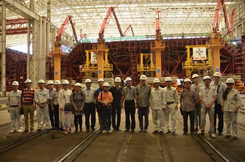 在西人工島,考察人員實(shí)地察看了人工島建設(shè)進(jìn)展情況,了解了人工島成島技術(shù),橋、島、隧轉(zhuǎn)換設(shè)計(jì)理念等;在沉管預(yù)制廠,考察人員聽取了沉管預(yù)制流程、高端生產(chǎn)設(shè)備研發(fā)、標(biāo)準(zhǔn)化管理、超大型沉管質(zhì)量管控等的介紹,并就沉管生產(chǎn)周期、成本、技術(shù)難點(diǎn)、文化建設(shè)等進(jìn)行了深入交流。