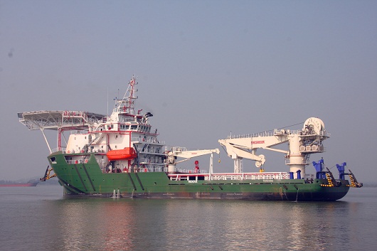 四航局航通船業(yè)一艘85米水下支持維護(hù)船試航