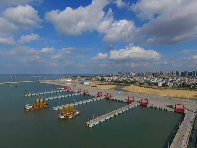 新海港區(qū)一期工程是四航局與海南港航控股有限公司所簽訂的《??诟垴R村中心港區(qū)工程、新海港區(qū)汽車客貨滾裝碼頭投資及工程總承包(BT+EPC)項(xiàng)目》的一部分,該工程總投資逾13億元,建設(shè)規(guī)模為10個(gè)10000GT級客貨滾裝泊位,年設(shè)計(jì)通過能力為170萬輛車次、1200萬人次。該工程是海南省和??谑?ldquo;十二五”期間的重點(diǎn)建設(shè)項(xiàng)目,該項(xiàng)目建成后,將逐步有序承接海口港秀英港區(qū)現(xiàn)有的瓊州海峽客滾運(yùn)輸業(yè)務(wù),成為??谀酥梁D线B接廣東省主要的路島運(yùn)輸中心,對深化??谂c徐聞乃至瓊粵兩省的經(jīng)濟(jì)交流、人文交往和社會合作具有重大而深遠(yuǎn)的意義。