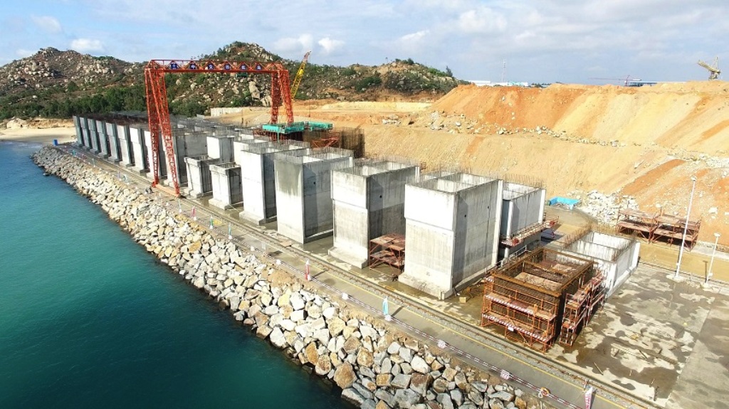該工程合同工期501天,建設(shè)范圍包括1個重件碼頭、442.81米碼頭防波堤、巡邏艇碼頭、582.43米廠區(qū)西防波堤、港池航道疏浚與導(dǎo)助航標志、重件碼頭與廠區(qū)道路連接段及碼頭附屬設(shè)施等。